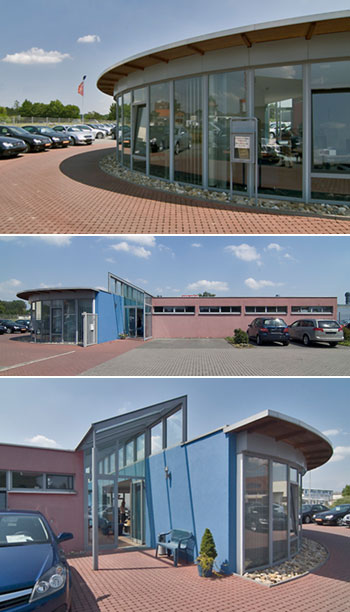Dieses Autohaus war das zweite Projekt, das ich für die Familie planen durfte, zuvor war mir am vorherigen Verkaufplatz gelungen, durch eine pfiffige Lösung aus einem einfachen Anbau etwas Besonderes werden zu lassen.